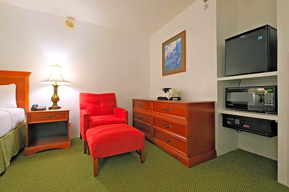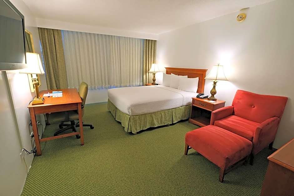 This air-conditioned king room features an HDTV with 57 premium channels including HBO film channels. A charging station for electronic devices and an in-room safe are included amenities.