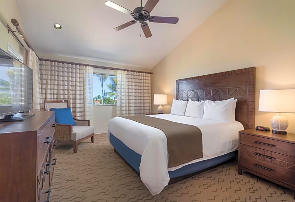 The Kona Coast Resort offers One-Bedroom Villas that can accommodate up to 4 adults and 3 children. Smoking is not allowed in these rooms. They feature a King size bed and a sofa bed for sleeping arrangements.
