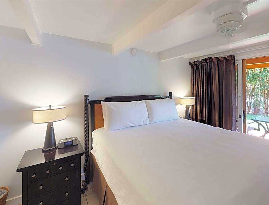 This room features a private patio with a view of the garden.