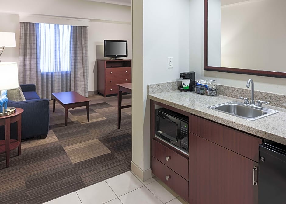 This suite offers a microwave, mini refrigerator and sofa bed.