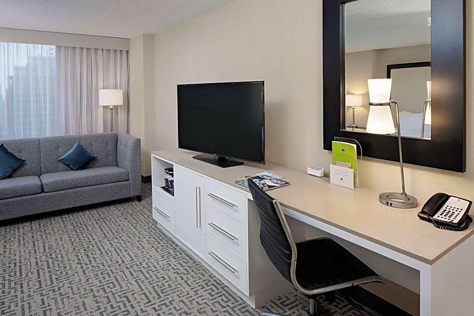 City views highlight this nonsmoking room with a 50-inch flat-screen TV. Granite counter tops and a spa shower head reflect luxury. There is an executive writing desk and complimentary tea/coffee.