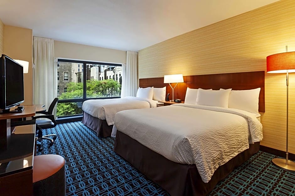 Guests can choose from a variety of room configurations, from standard and queen rooms to studios and king rooms, with some options offering city views to take in the Chicago skyline.