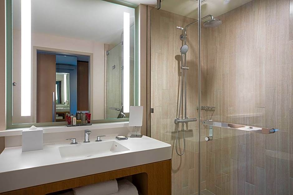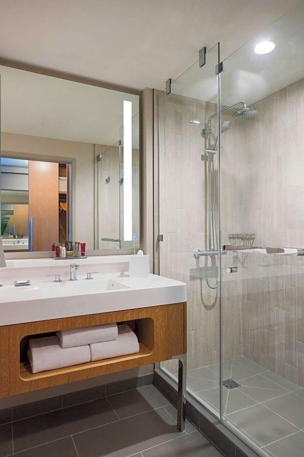 Offering views of the city skyline, this room includes a work desk with an ergonomic chair and a private bathroom with a hairdryer and upscale bath amenities.