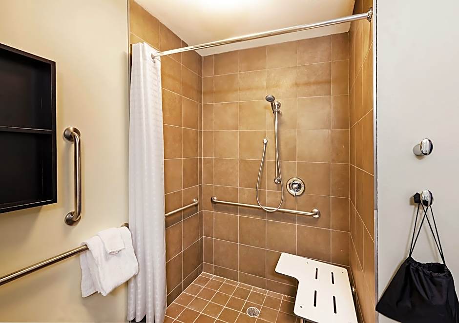 The suite provides a tea and coffee maker, heating, as well as a private bathroom featuring a shower and a hairdryer. This wheelchair accessible suite features air conditioning, a seating area with a flat-screen TV and a toilet with grab rails.