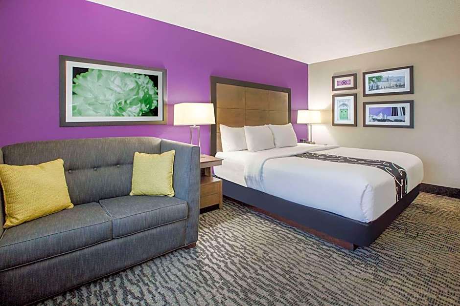 There are three types of rooms available at La Quinta Inn and Suites by Wyndham Elkhart. The King Studio Suite and Executive King Room with Sofa Bed are both non-smoking rooms that can accommodate up to 5 adults and 4 children. These rooms have a King size bed and a sofa bed. The Queen Room with Two Queen Beds is also a non-smoking room that can accommodate the same number of guests and has two Queen size beds. All rooms have a size of 258 sqft.