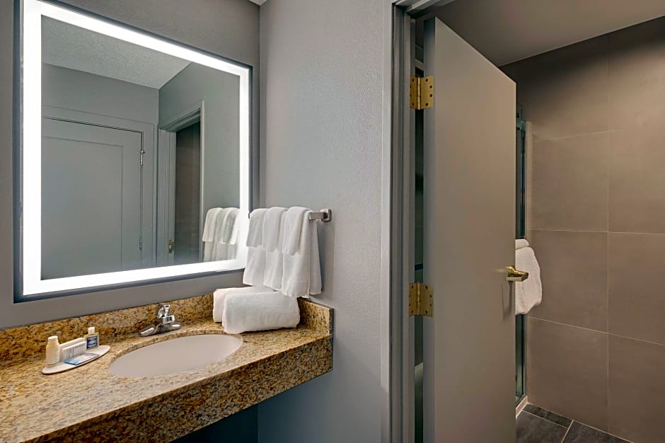 This room includes a private bathroom with a lighted make-up mirror, bath tub and shower. A hairdryer and complimentary bath amenities are also provided.