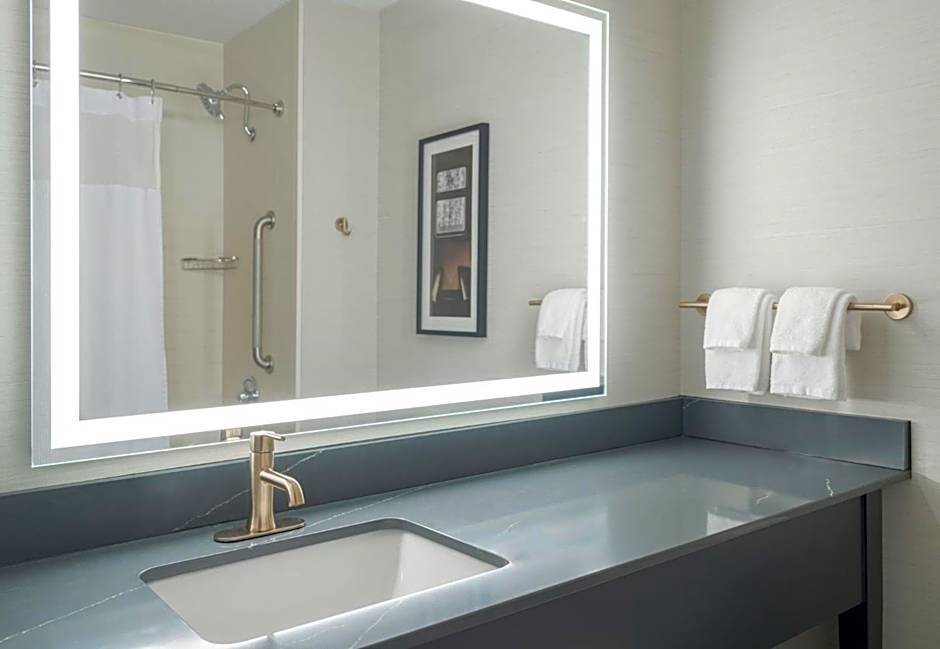 This nonsmoking room features a disability accessible tub. A headboard with a reading light is provided. A charging station and wireless printing are also offered. A toiletry relaxation kit is provided as well.
