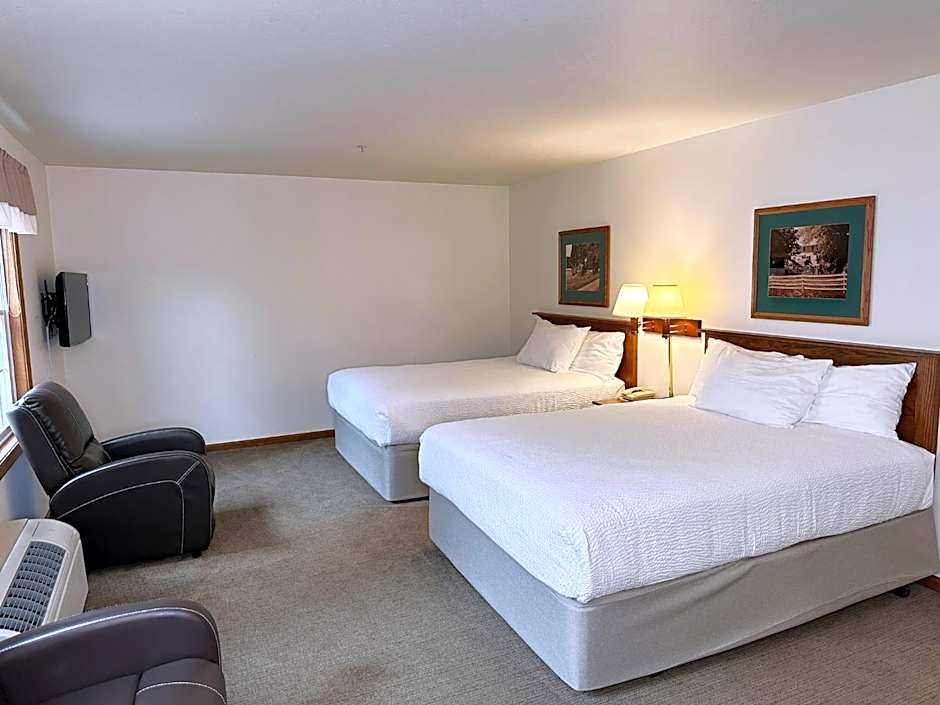 The Farmstead Inn and Conference Center offers a variety of room types including Classic Two Queen, Standard King Room, Suite One King Sofa Sleeper, Grand Two Queen Sofa Sleeper, Classic One Queen Sofa Sleeper, Suite Two King Sofa Sleeper, Classic One Queen - Handicapped, Grand King, and Grand Two Queen rooms. The rooms range in size from 248 sqft to 495 sqft. Smoking is not allowed in any of the rooms. The rooms can accommodate between 2 to 5 adults and 2 children, and bed sizes include Queen, King, and Sofa Bed.