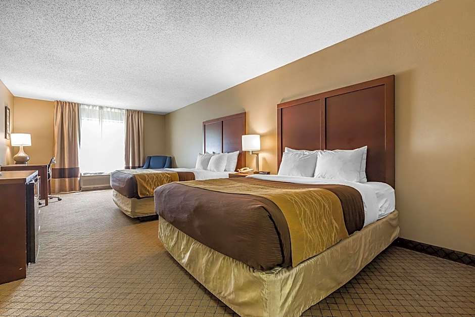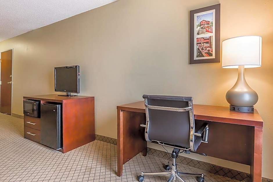 The Comfort Inn & Suites Mishawaka-South Bend offers a variety of room types. These include a King Room with Roll-In Shower - Mobility Accessible/Non Smoking, a Queen Room with Two Queen Beds - Non-Smoking, a Standard Queen Room with Two Queen Beds and Tub - Accessible/Non-Smoking, a King Room - Non-Smoking, a King Suite - Non Smoking, and a Standard King Room with Tub - Accessible/Non-Smoking. These rooms range in size from 301 sqft to 355 sqft and can accommodate either 2 adults and 1 child or 4 adults and 3 children. Smoking is not allowed in any of the rooms.