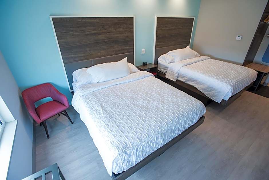 Room options include King Room, Queen Room, and configurations with two Queen beds. These layouts provide flexible space for solo travelers, couples, or small groups.