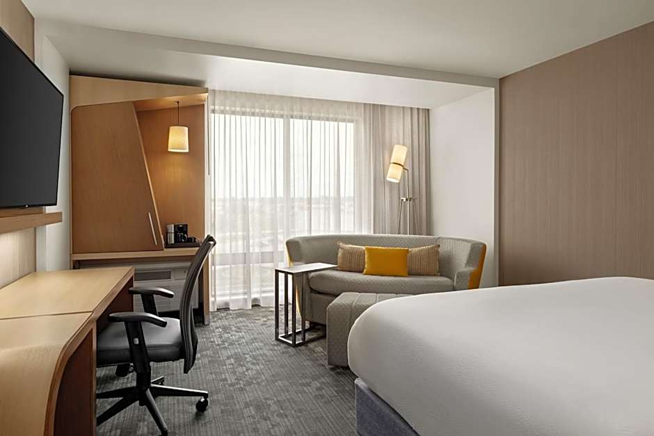 The Courtyard by Marriott Omaha East/Council Bluffs, IA offers a King Room with Sofa Bed and a Double Queen Room. Both room types do not allow smoking. The King Room with Sofa Bed accommodates up to 3 adults and 2 children, with 1 King size bed and 1 Sofa Bed. The Double Queen Room accommodates up to 4 adults and 3 children, with 2 Queen size beds.