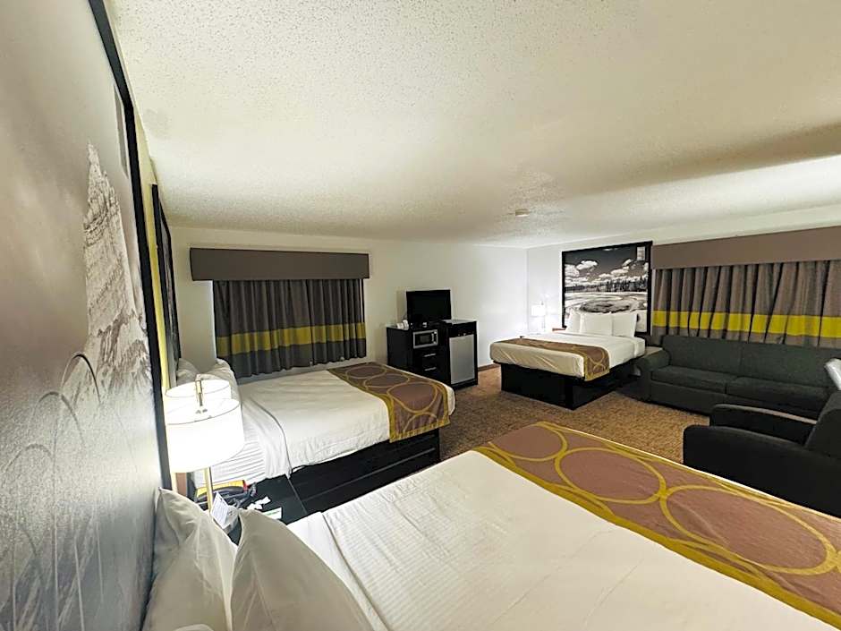Forest City Inn offers a variety of non-smoking rooms. The King Room and Queen Room with Two Queen Beds are suitable for couples or small families, accommodating up to 2 or 4 adults respectively, with bed sizes of a King or 2 Queens. The Superior Queen Suite is a larger option for bigger groups, with three Queen beds and accommodating up to 6 adults. The hotel also offers a Queen Room with Disability Access for 2 adults, featuring a Queen bed.