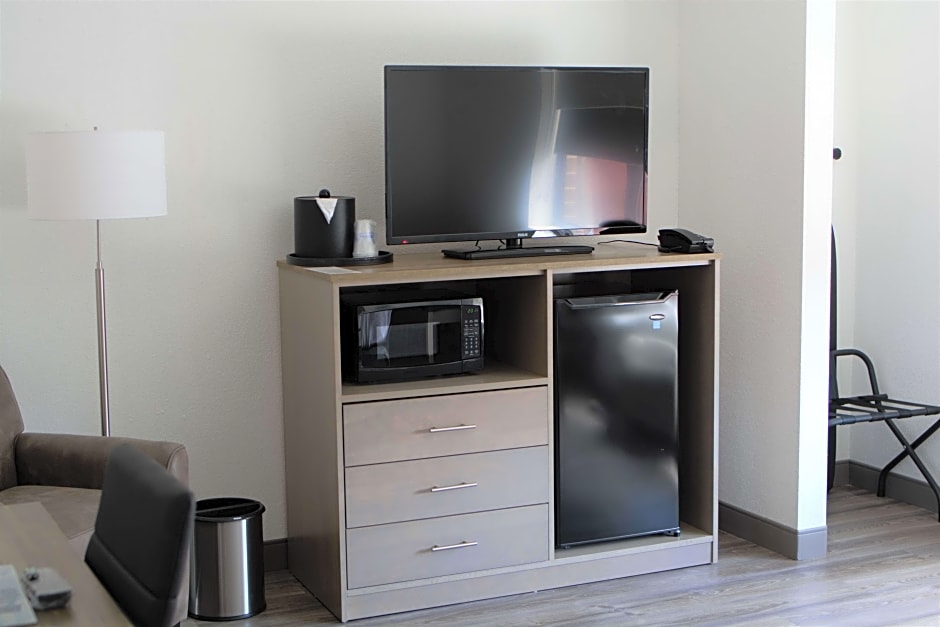 Featuring free toiletries, this suite includes a private bathroom with a shower and a hairdryer. Guests can make meals in the kitchenette that features a stovetop, a refrigerator, a dishwasher and kitchenware. This wheelchair accessible suite has air conditioning, a seating area with a flat-screen TV and a roll-in shower.