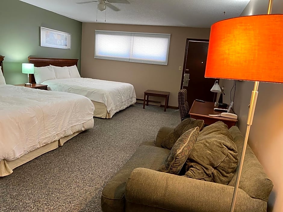 At Diamond Motel - Abilene, the available room types include King Room (non-smoking), Family Room, Queen Room with Two Queen Beds (non-smoking), and Two-Bedroom Suite. The King Room and Queen Room with Two Queen Beds can accommodate 2 adults and 2 children, while the Family Room and Two-Bedroom Suite can accommodate 4 adults and 2 children or 5 adults and 2 children, respectively. Smoking is not allowed in any of the rooms. The beds in the rooms vary, with options including a King size bed, Queen size bed, and a sofa bed.