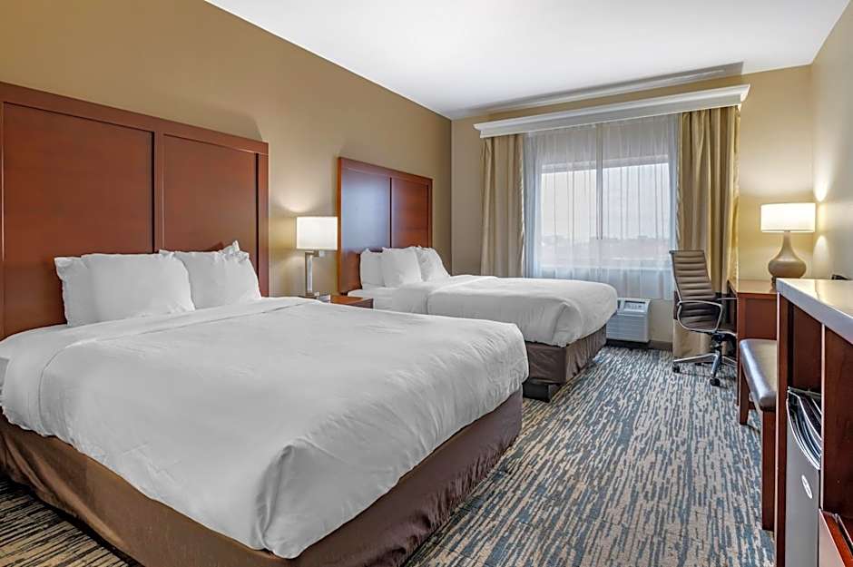 The Comfort Suites Keeneland hotel offers a range of rooms including a Standard Double Room with Double Beds, a King Suite, and a Queen Suite. All rooms are non-smoking and have a room size of 301 sqft. The Standard Double Room accommodates 6 adults and 4 children, while the King and Queen Suites accommodate 4 adults and 3 children, and 5 adults and 4 children respectively.