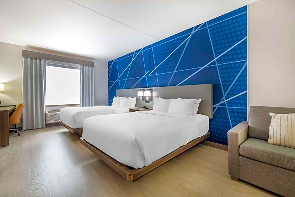 The Comfort Suites Louisville Airport hotel offers various suite options. There are Queen Suites with Two Queen Beds, which accommodate up to 5 adults and 4 children, and King Suites with a King size bed and a sofa bed, which accommodate up to 4 adults and 3 children. The hotel also has Queen Suites and King Suites that accommodate fewer occupants. All rooms are non-smoking and have a room size of 312 sqft.