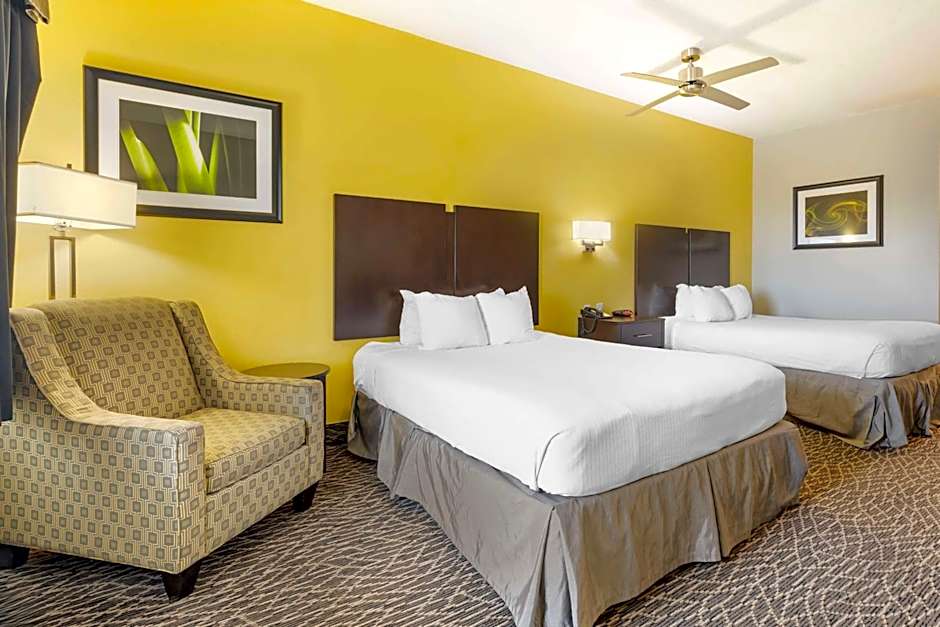 The Best Western West Monroe Inn offers a variety of room types including Double, Quadruple, and Suite options. The rooms range from 312 sqft to 355 sqft in size and all are non-smoking. The occupancy capacity varies, accommodating anywhere from 2 to 5 adults, with additional space for children in some rooms. Bed sizes include King and Queen, with some rooms also featuring a sofa bed.