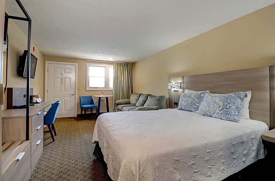 This king studio features a microwave, coffeemaker, toaster and a refrigerator as well as a flat-screen TV with a DVD player. The private bathroom includes a hairdryer.