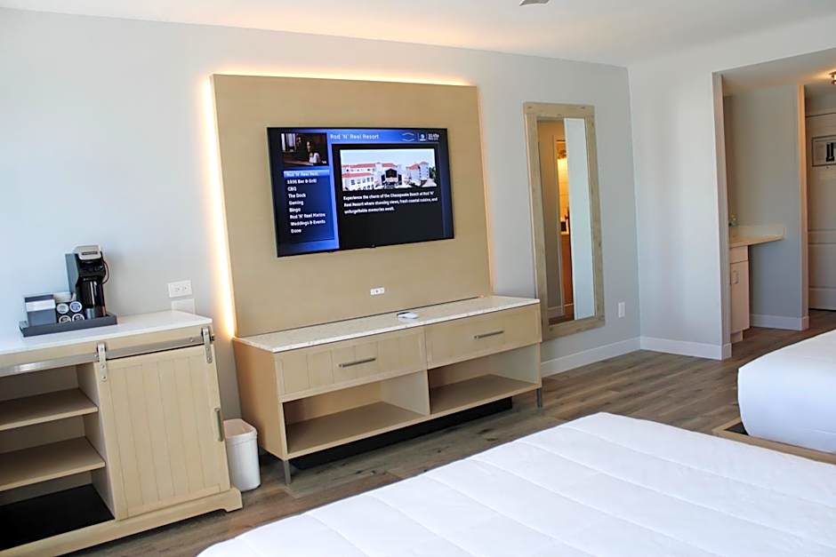 After a day of thrills at the beach or the water park, retreat to your thoughtfully designed room. Choose from a variety of accommodations, whether it's for a cozy couple's retreat or a spacious suite perfect for group gatherings. With beds designed for your dreams and views to inspire your adventures, you’ll wake up refreshed and ready to seize the day. Whether lounging on your balcony at the end of the day or lounging poolside, the Rod 'N' Reel Resort will quickly become your favorite place to return to year after year!