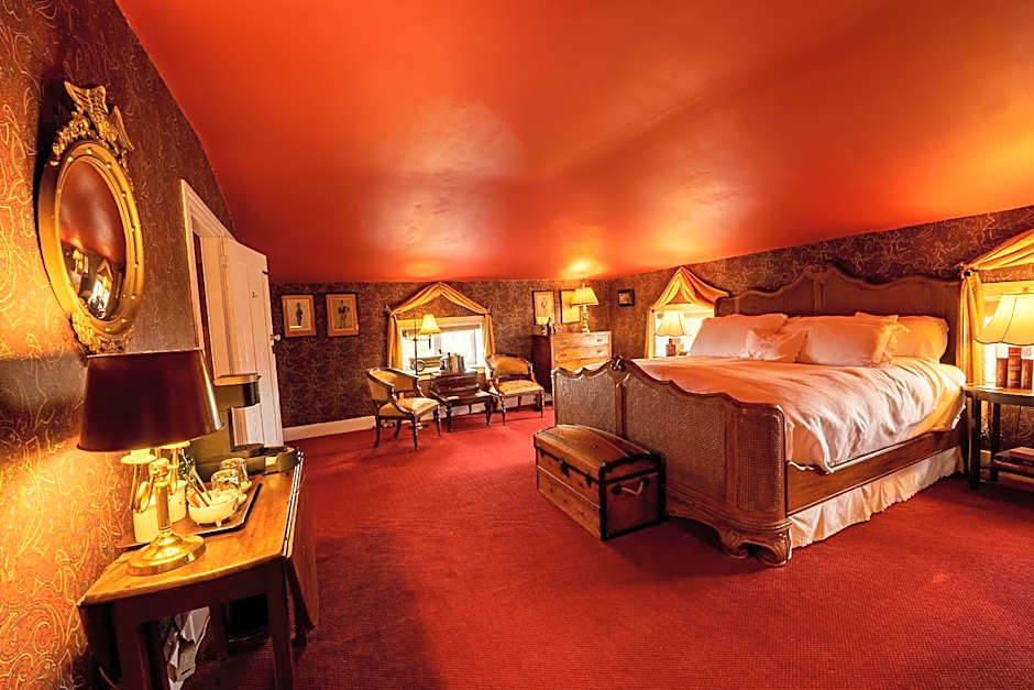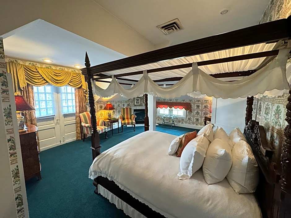 The Boyd Room is located in the Mansion on the second floor. It features a king bed, walk-in shower, wood-burning fireplace and a garden view.