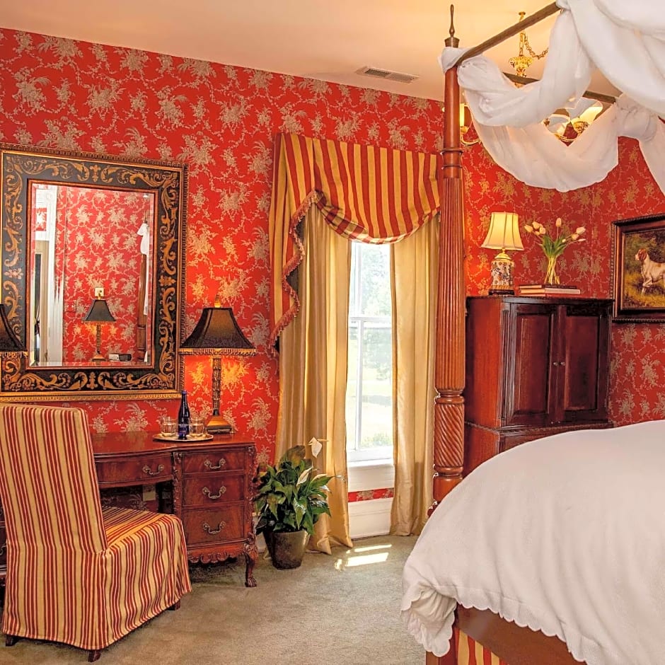 The Lamberton Room is located in the Mansion on the second floor. It features a queen bed, steam shower and a wood-burning fireplace.