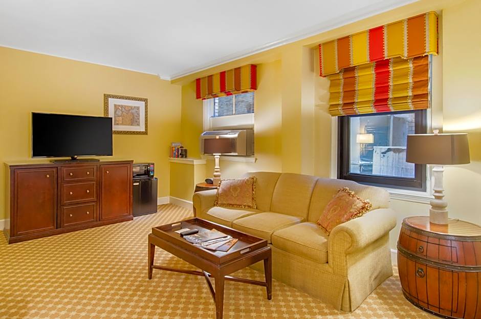This decorative suite honors a Boston historic figure and includes a formal living room.