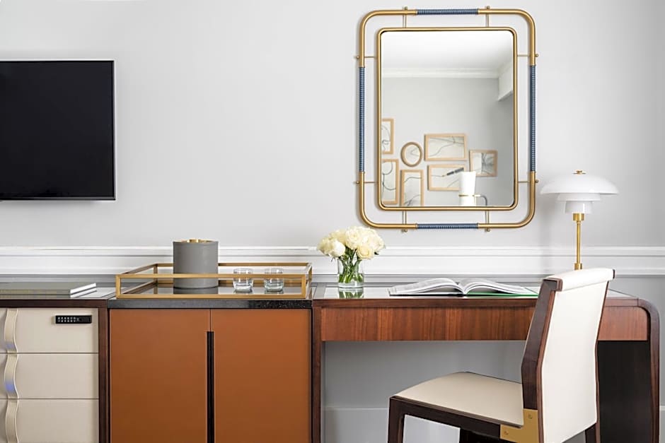 This suite offers a sitting area and a work area.