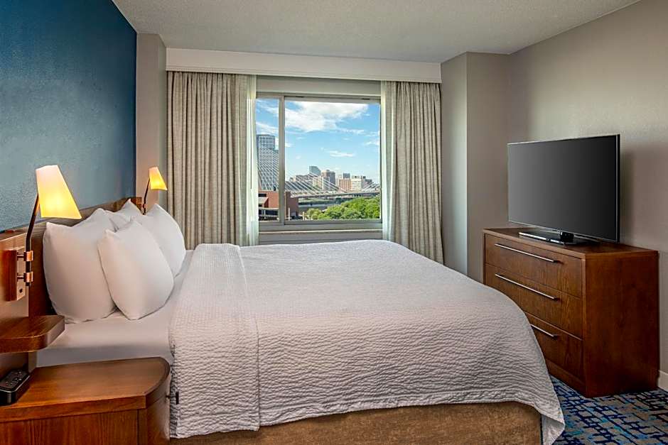The Residence Inn by Marriott Boston Harbor on Tudor Wharf offers suites and studios as its room options. The suites include a one-bedroom king suite with a sofa bed and view, and a one-bedroom king suite with a view. The studios include a queen studio with a sofa bed and view, and a queen studio with a sofa bed. All rooms have a non-smoking policy and can accommodate up to 4 adults and 3 children. Bed sizes range from queen beds to sofa beds.