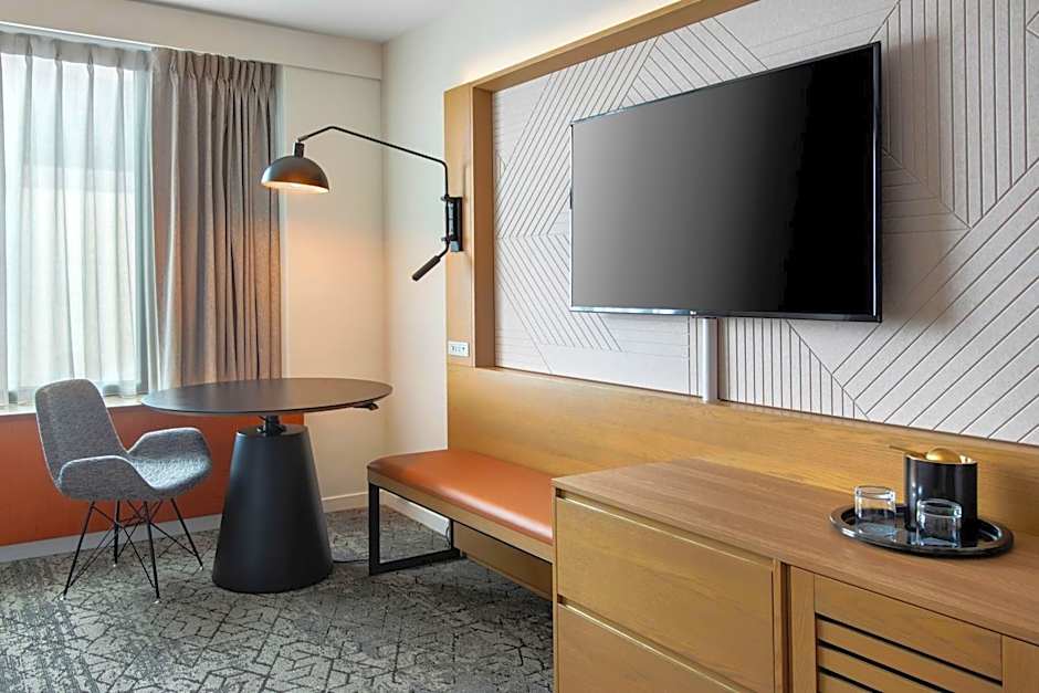 In terms of dining options, the hotel offers two restaurants. SideBar provides a modern ambiance and serves American cuisine, while Market also has a modern atmosphere and offers American dishes.