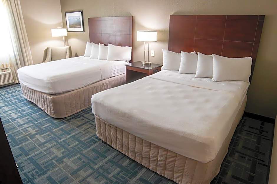 Staying active is easy with a complimentary fitness center, and air conditioning keeps interiors comfortable after a day of exploring. The building includes an elevator, and on-site parking is available for guests. For larger plans, extras include an indoor swimming pool, meeting or banquet facilities, and a golf course, all with extra charges.
