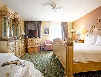 The hotel offers a variety of rooms such as 1 bedroom apartments, 1 Queen, 1 King, and 2 Queen bed rooms, as well as deluxe rooms with jetted tubs. Most rooms can accommodate 2 adults and 1 child, except for the Deluxe King Room with Jetted Tub and the One-Bedroom Apartment which accommodate 4-5 adults and children. Smoking is not allowed in any of the rooms, and bed sizes range from Queen to King. Room sizes are not explicitly provided for most rooms.