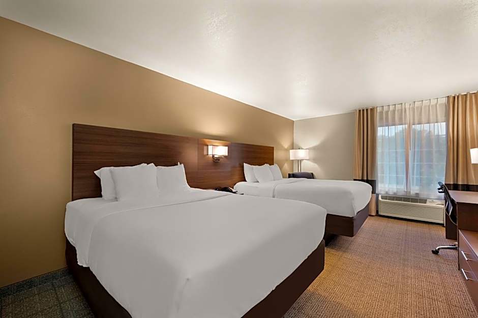 The Comfort Inn & Suites Fenton hotel offers various types of rooms including Queen Rooms with Two Queen Beds, King Suites with Sofa Beds, Queen Suites with Sofa Beds, and King Rooms. The rooms are all non-smoking and have either double or quadruple occupancy. The bed sizes vary from Queen to King, with some rooms also having a sofa bed.