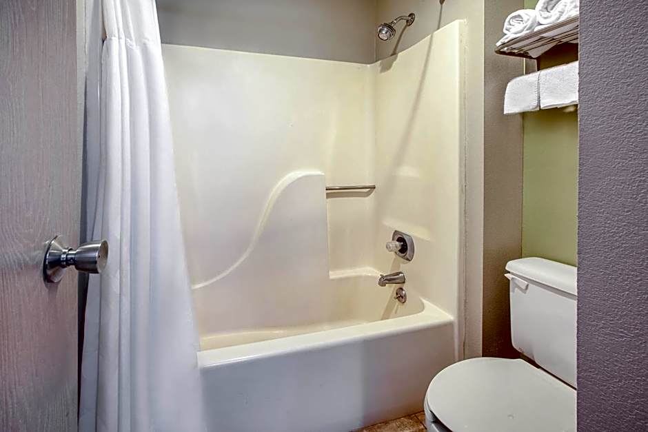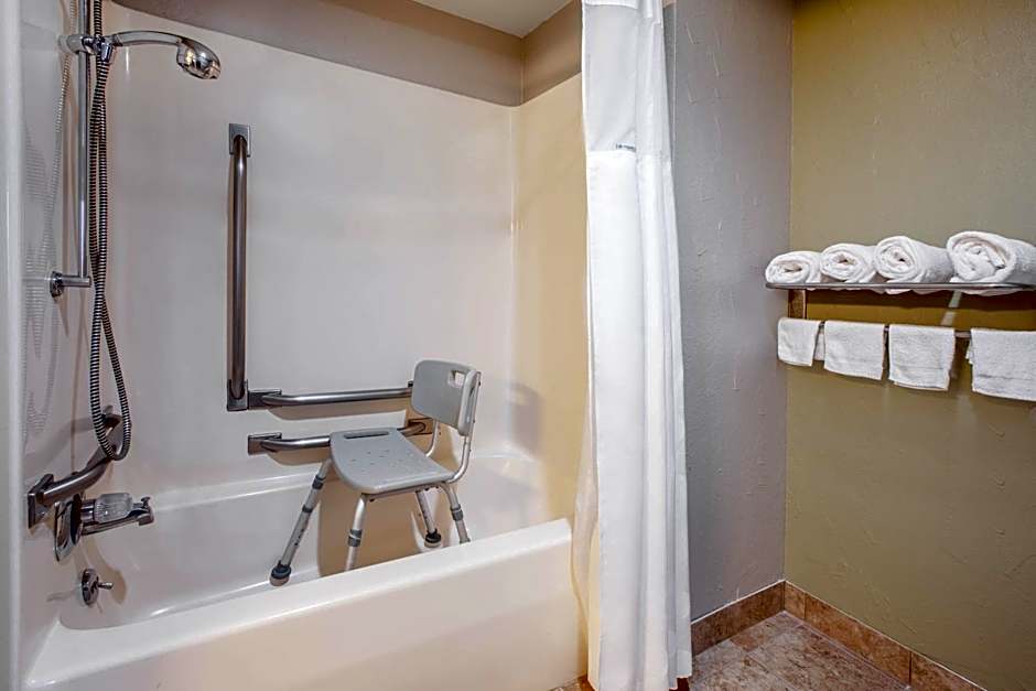This room includes one queen bed with an ADA tub equipped with a seat and grab bars. Wheelchair accessible shower available upon request.