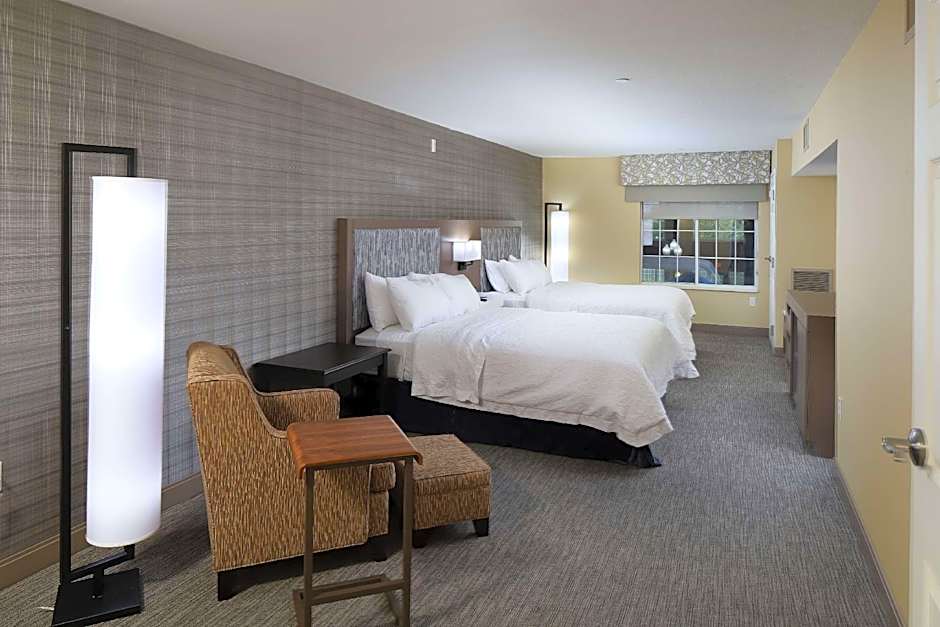 The Hampton Inn Holland offers a variety of room types including Queen Rooms with Two Queen Beds and Bath Tub, Queen Rooms with Two Queen Beds, Queen Suites, One-Bedroom King Suites, One-Bedroom Queen Suites with Two Queen Beds, and King Rooms. All rooms are non-smoking and range in size from 312 sqft to 398 sqft. The rooms can accommodate different numbers of adults and children, with bed options including sofa beds, queen size beds, and king size beds.