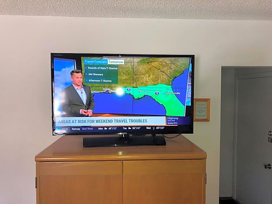 Offering a 40-inch flat screen HD TV, and cable, this room includes a microwave, small refrigerator, in room coffee, and hair dryer.
