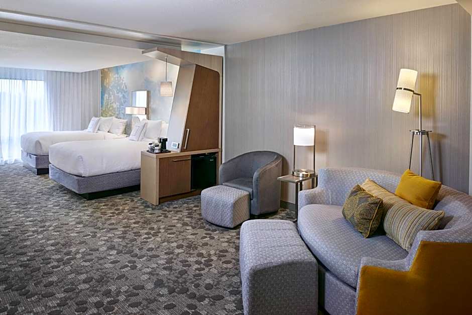 The Courtyard by Marriott Jackson offers guest rooms with 2 Queen beds, 1 King bed with a sofa bed, and suites with 2 Queen beds and a sofa bed. All rooms are non-smoking and have a size of 301 sqft. The rooms can accommodate 4 adults and 3 children, while the suites can accommodate 6 adults and 5 children.