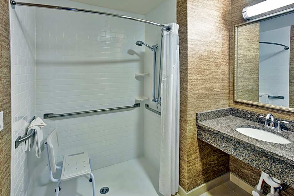 Offering a visual alarm system and bathroom grab bars, this room is equipped with free Wi-Fi and a 32-inch flat-screen TV. A microwave and a refrigerator are provided.