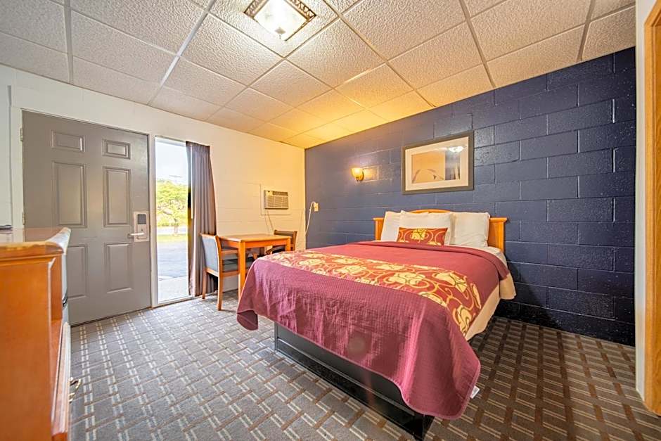 Room options at Sleep-ees Inn include three choices: Queen Room (1 Queen size bed; non-smoking; sleeps 2 adults and 1 child), Room - 2 Double (2 Double beds; non-smoking; sleeps 2 adults and 1 child), and King Room (1 King size bed; non-smoking; sleeps 2 adults and 1 child).