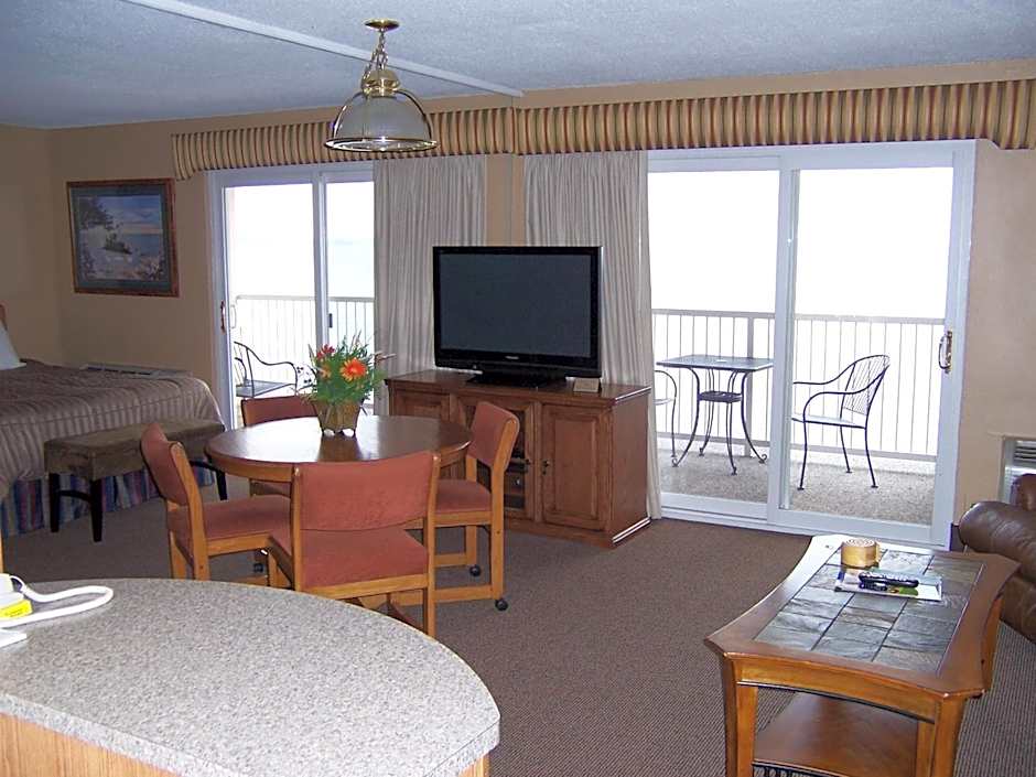 Accommodation options include condo and studio layouts with beach or sea views, plus suites in several configurations. Each space offers amenities such as air conditioning, non-smoking options, free toiletries, and bathtubs, along with kitchens, patios, and balconies to make the most of the lakefront backdrop. Payment is accepted via American Express, Discover, Visa, and Mastercard, with cash not accepted. Check availability to plan a seaside getaway.
