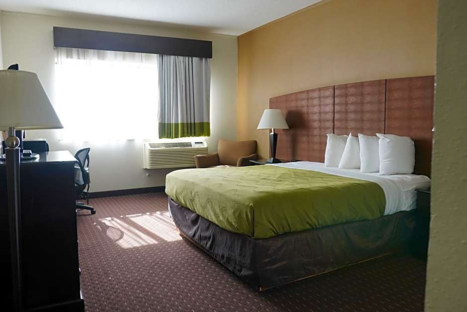 At American Inn & Suites, guests can choose from Queen Rooms with Two Queen Beds or King Rooms, all non-smoking. The Queen Rooms can accommodate up to 4 adults and 3 children, while the King Rooms accommodate 2 adults and 1 child. Both room types offer comfortable bed sizes with spacious rooms ranging from 474 sqft to 560 sqft.