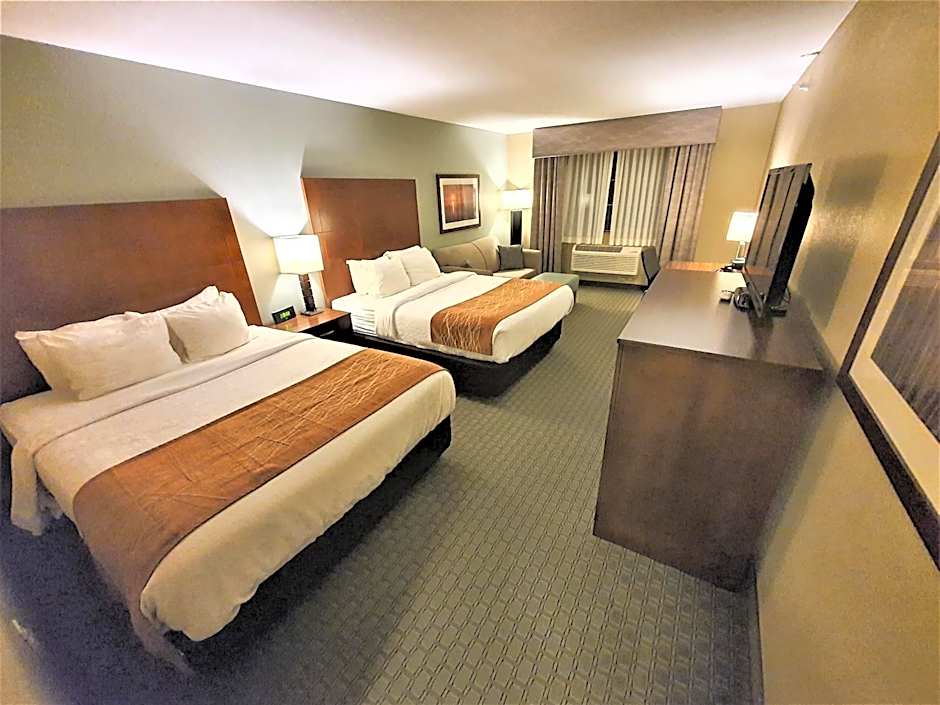 The AmeriVu Inn and Suites - Chisago City offers a variety of room types including Queen Studios, Deluxe King Rooms, Deluxe Queen Rooms, Budget Double Rooms, Apartments, Family Rooms with Bath, Family Suites, Queen Rooms with Disability Access, King Rooms, Deluxe Apartments, and Deluxe Double Rooms. All rooms are non-smoking and accommodate up to 4 adults. The bed sizes range from Queen size beds to King size beds, with some rooms also offering sofa beds. Room sizes are all 355 sqft except for the Family Room with Bath which is 398 sqft.