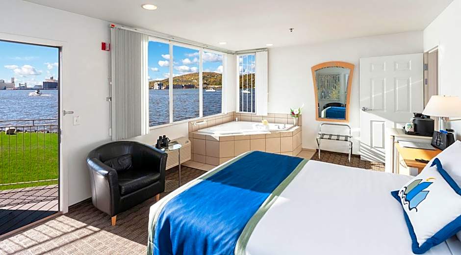 This suite features a hot tub, spa bath and fireplace. Featuring a private entrance, this air-conditioned suite consists of 1 living room, 1 separate bedroom and 1 bathroom with a walk-in shower and a hairdryer. Boasting a balcony with lake views, this suite also provides soundproof walls and a flat-screen TV with streaming services. The unit offers 2 beds.