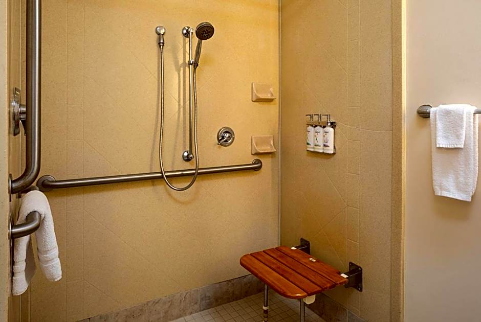 Offering free Wi-Fi and a flat-screen cable TV, this accessible room is equipped with a refrigerator and a microwave. A roll-in shower is provided.