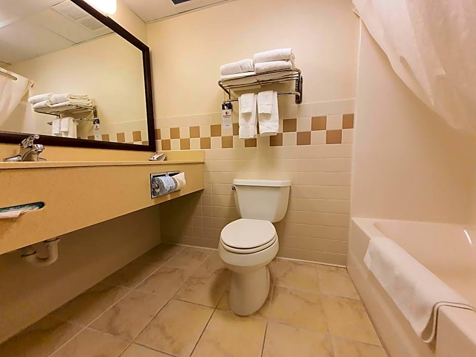 Located on the first floor, this accessible room includes a 2-person spa bath and a 32-inch flat-screen TV with premium cable channels.A microwave and a refrigerator are also provided.