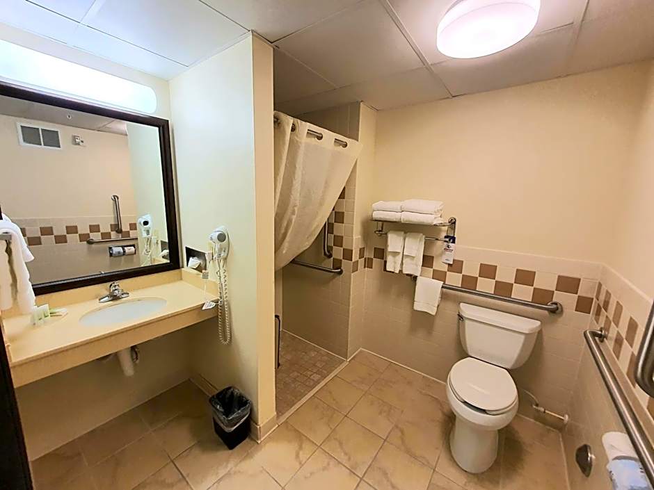 Located on the first floor, this accessible room includes a 32-inch flat-screen TV with premium cable channels. Bathroom grab bars and a folding shower seat are also provided.
