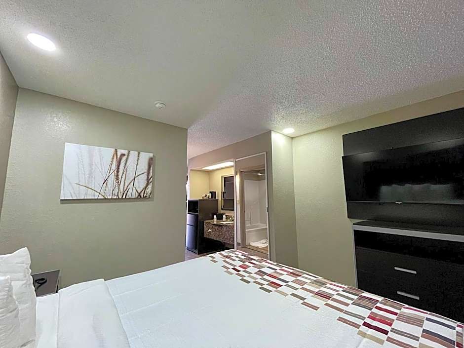 This charming motel is brimming with amenities to elevate your experience. Dive into the refreshing outdoor swimming pool, unwind in the soothing spa tub, or take advantage of the complimentary Wi-Fi to share your adventures. Traveling with furry friends? No problem! The Red Roof Inn & Suites welcomes pets (extra charges apply), making it a tail-wagging good time for everyone. You'll also enjoy the perks of 24-hour front desk service, private parking, air conditioning, and relaxing non-smoking rooms equipped with free toiletries and a bathtub for a calming soak after a day of exploration.