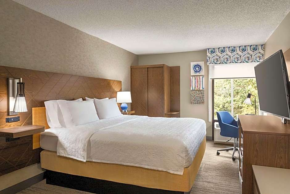 The hotel offers a selection of comfortable and spacious room types to cater to your specific needs. From the Queen Room with a roll-in shower to the Non-Smoking King Study, you can find the perfect room for your stay. Each room is thoughtfully designed with modern amenities such as a flat-screen TV, private bathroom with a bathtub, and a tea/coffee maker. Whether you're traveling alone, with a partner, or with a group, the Hampton Inn Kansas City - Airport has the ideal room to ensure your comfort and relaxation during your stay.