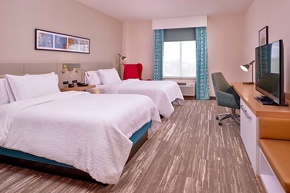 The Hilton Garden Inn Kansas City Airport Mo offers rooms with various bed configurations, including King rooms, Queen rooms with two Queen beds, and Deluxe King rooms. The rooms have an average size of 301 sqft, with some Premium rooms offering a slightly larger size of 312 sqft. Smoking is not allowed in any of the rooms. The rooms can accommodate either 2 adults and 1 child or 4 adults and 3 children, depending on the bed configuration.