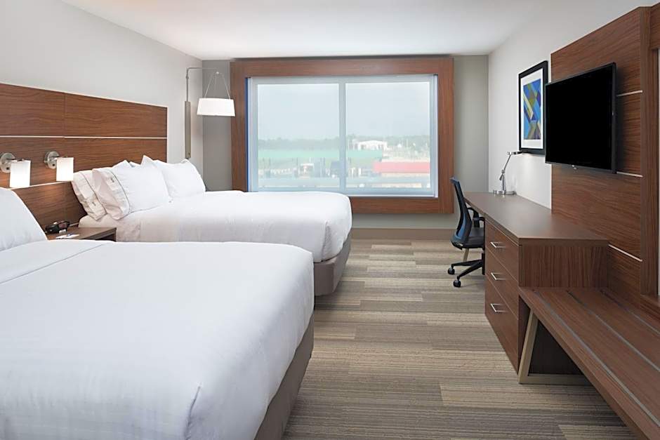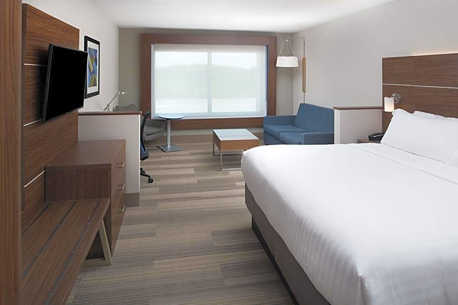 The Holiday Inn Express & Suites Kingdom City offers a variety of rooms that cater to different needs. They have Double or Twin Rooms with 2 twin beds accommodating 2 adults and 1 child, Suites with 1 king size bed accommodating 6 adults and 4 children, and Queen Rooms with Two Queen Beds accommodating 5 adults and 4 children. These rooms are non-smoking and vary in bed sizes.