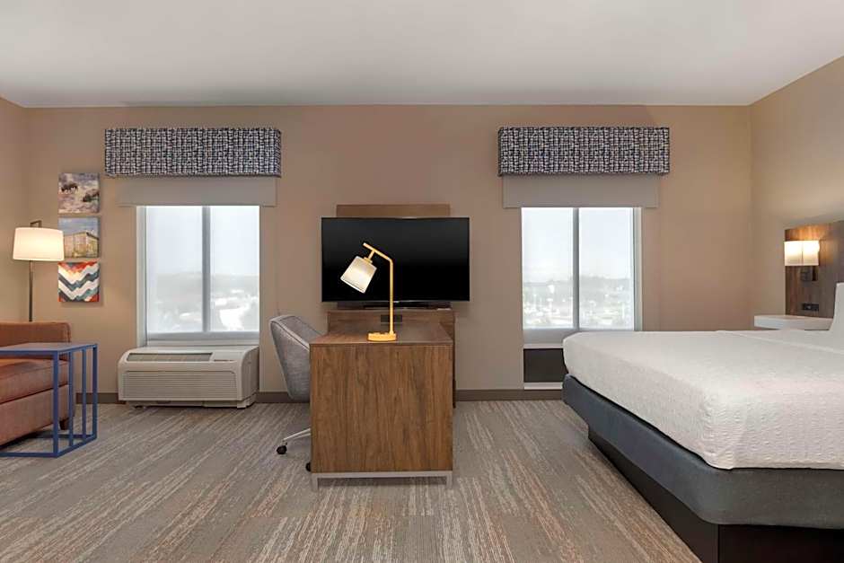 The Hampton Inn & Suites Billings West I-90 offers a variety of room options. They have Non-Smoking King Studio Suites with Sofa Beds that can accommodate up to 3 adults and 2 children, as well as Queen and King rooms that can accommodate either 4 adults and 3 children or 2 adults and 1 child. The room sizes range from 301 sqft to 431 sqft. Smoking is not allowed in any of the rooms.